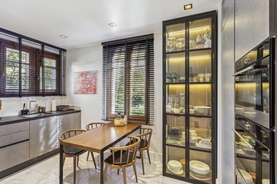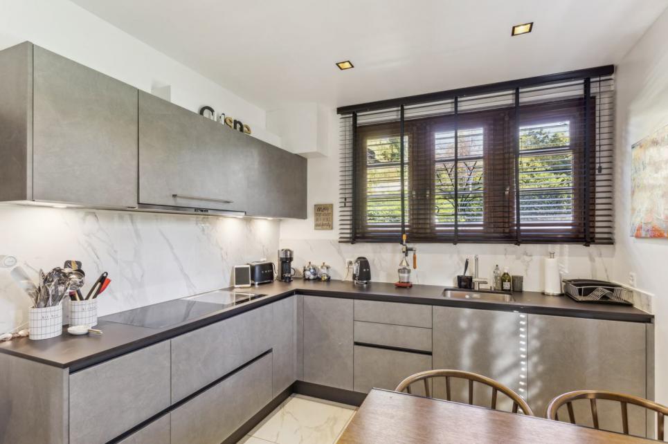 La maison s'ouvre sur un hall spacieux qui distribue une cuisine entièrement équipée, une salle à manger, un salon convivial avec plusieurs coins salon, ainsi qu'une chambre d'amis pratique au rez-de-chaussée.