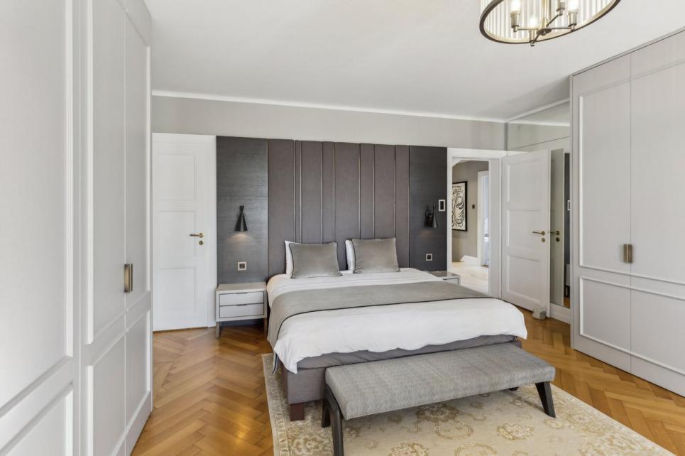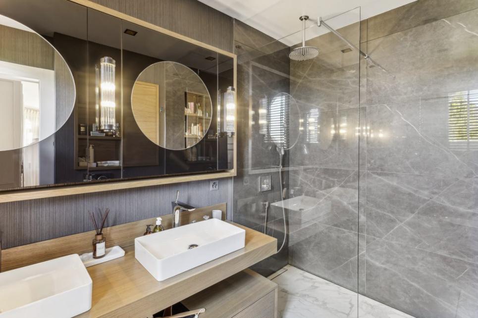 À l'étage, deux grandes chambres avec une salle de bains luxueuse et un dressing attendent les résidents. La suite parentale, située au niveau supérieur, dispose d'une salle de bains privée et d'un élégant dressing.