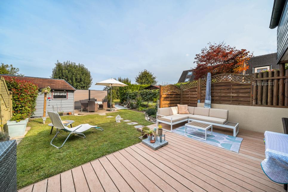 Le jardin arborisé et soigneusement aménagé constitue un véritable havre de paix, idéal pour profiter des beaux jours.