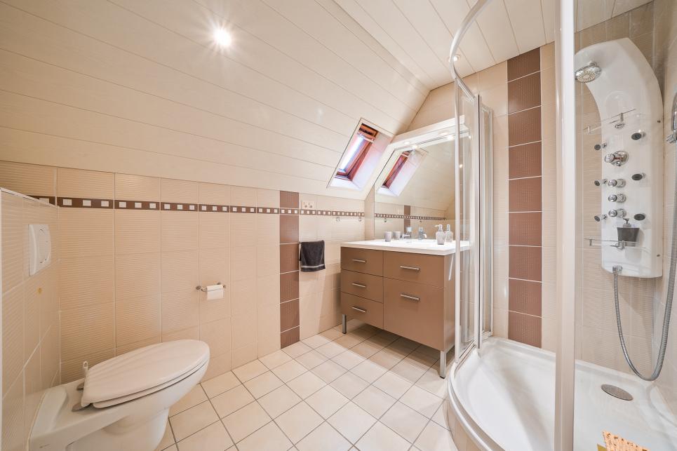 Étage : trois belles chambres dont une suite parentale avec sa propre salle de bains ainsi qu'une salle de bains supplémentaire.