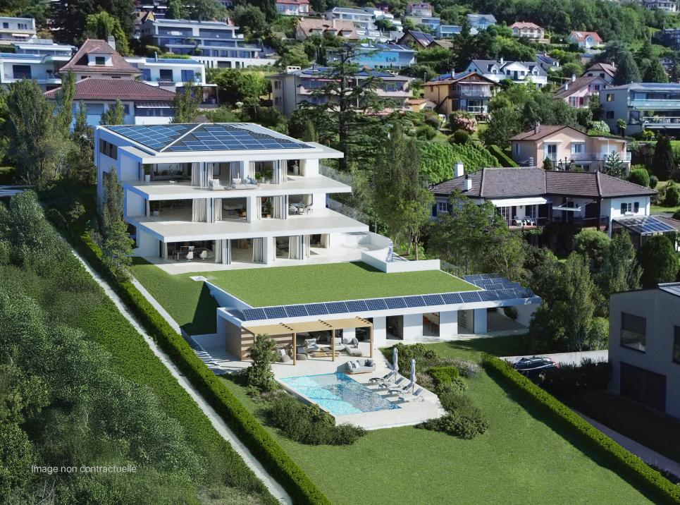 Composé de six appartements de 3.5 et 4.5 pcs ainsi que d'une villa individuelle, ce futur immeuble vendu sur plans, offre une vue spectaculaire sur les Alpes, la région et tout le lac Léman.
