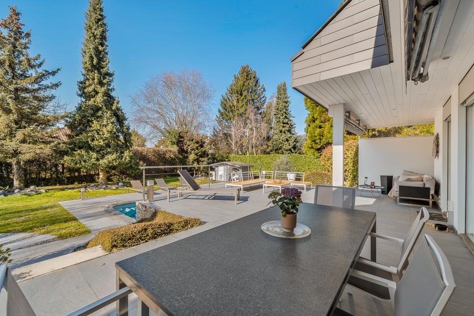 Idéalement située, cette magnifique villa avec piscine allie confort, espace et tranquillité. Implantée dans un environnement calme et verdoyant de la Terre Sainte, cette magnifique propriété de 7.5 pièces réparties sur environ 240 m² totaux offre un cadre de vie exceptionnel. Idéale pour les familles, elle bénéficie d'une localisation privilégiée à proximité de toutes les commodités et des accès rapides à Genève.