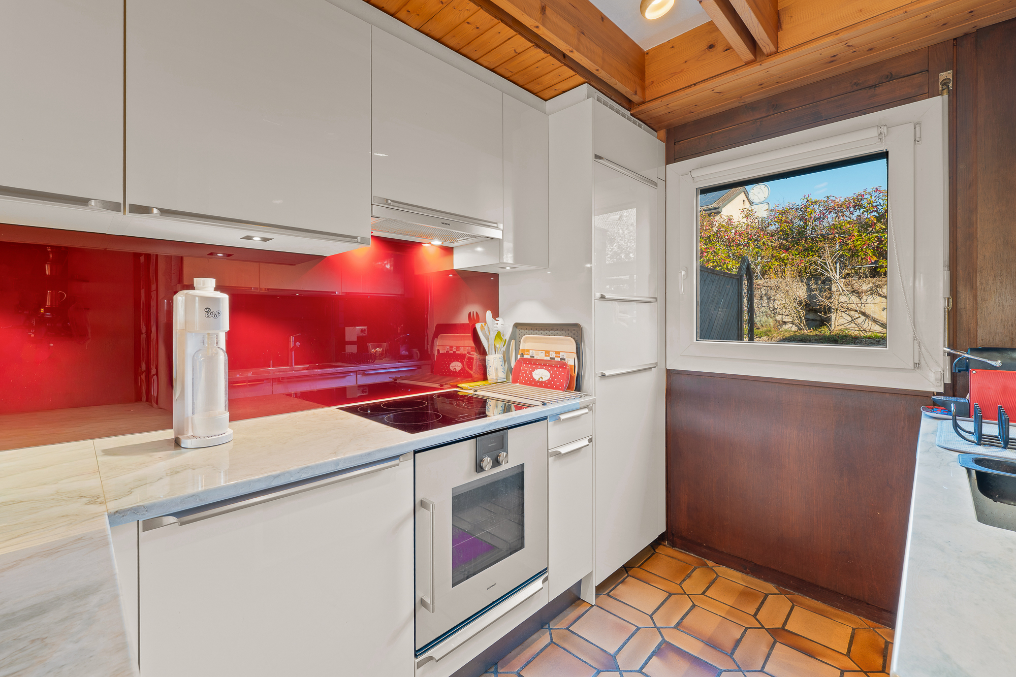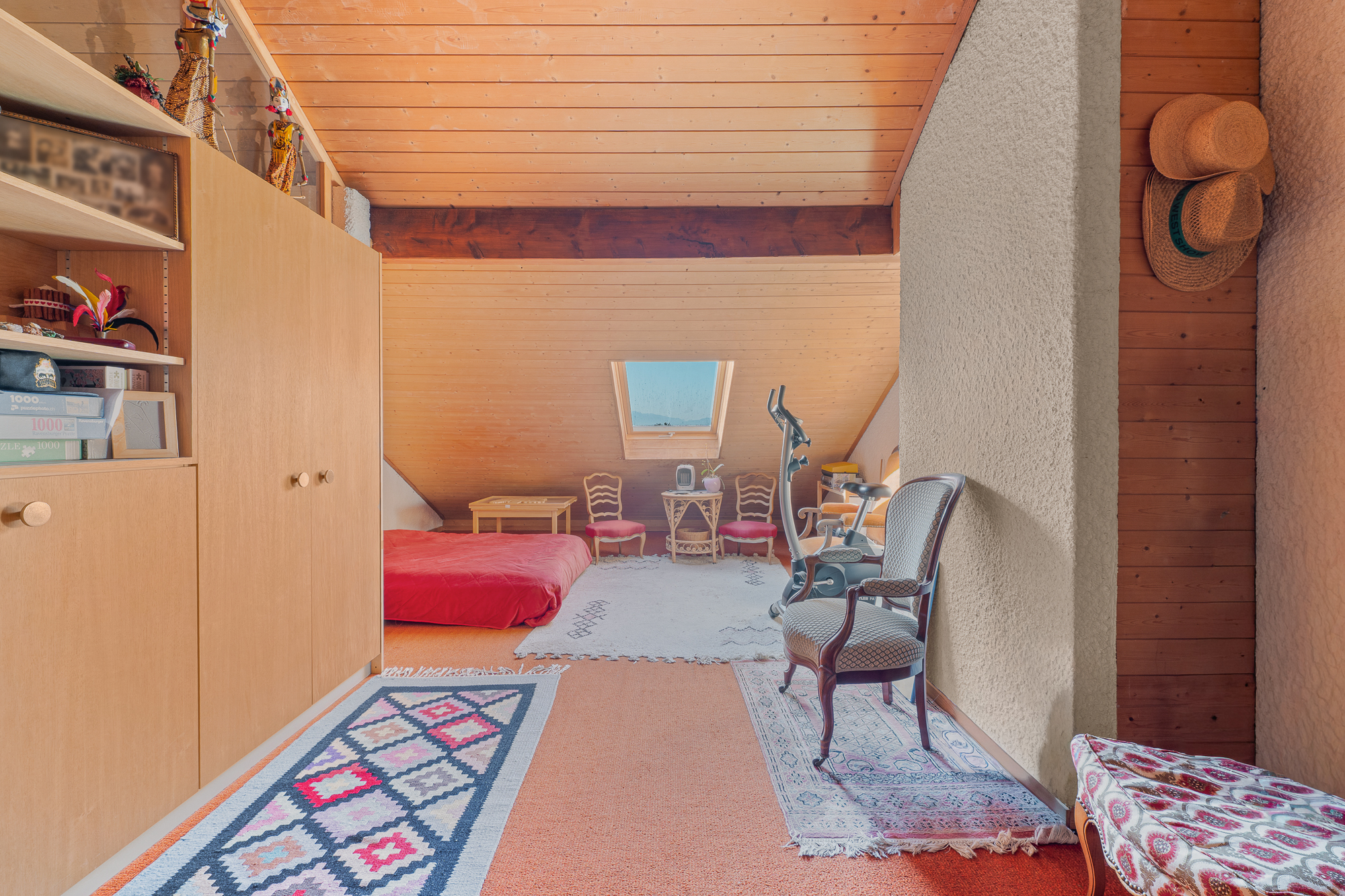 À l’étage se trouvent deux chambres ainsi qu’une salle de bain. Les combles accueillent une troisième chambre, idéale comme chambre supplémentaire, bureau ou espace polyvalent.