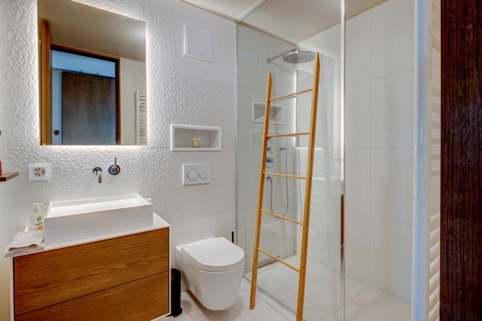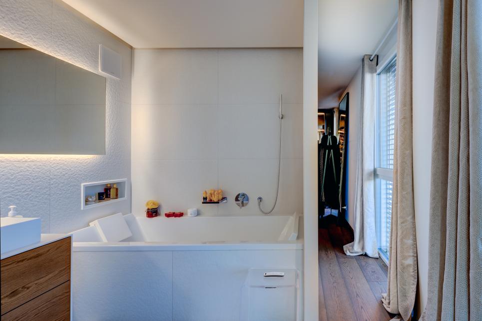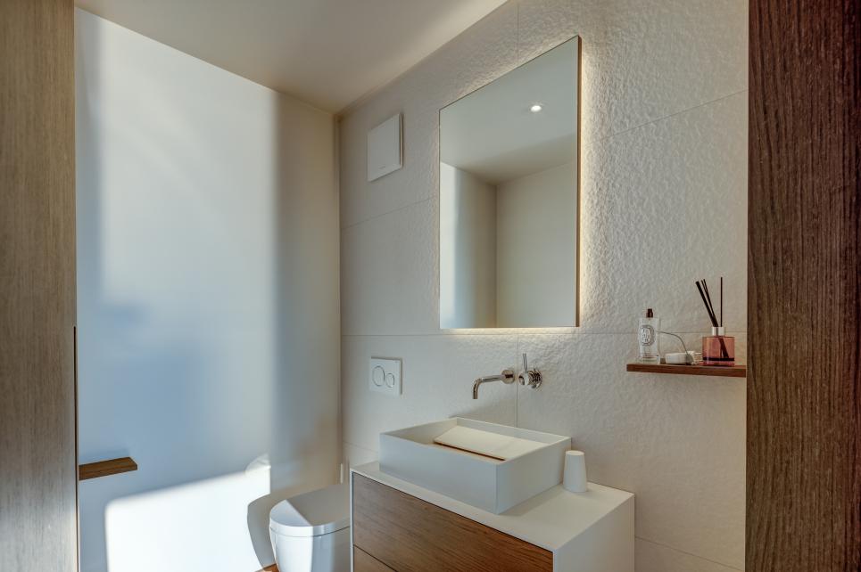 L'attique propose également un bureau discret, une buanderie pratique, ainsi qu'un espace nuit composé d'une suite parentale avec dressing sur mesure et salle de bain élégante, ainsi qu'une chambre d'amis disposant de sa propre salle d'eau.
