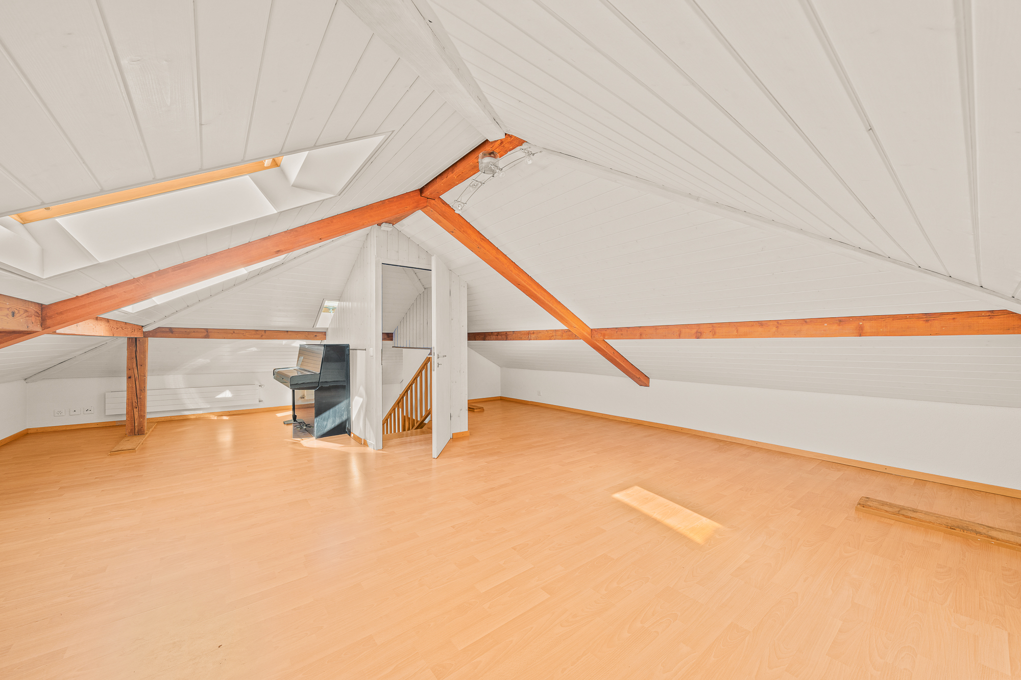 Les combles, magnifiquement aménagés, offrent un espace supplémentaire modulable selon les besoins : salle de jeux, bureau, espace de détente ou atelier privé — un lieu inspirant sous les toits.