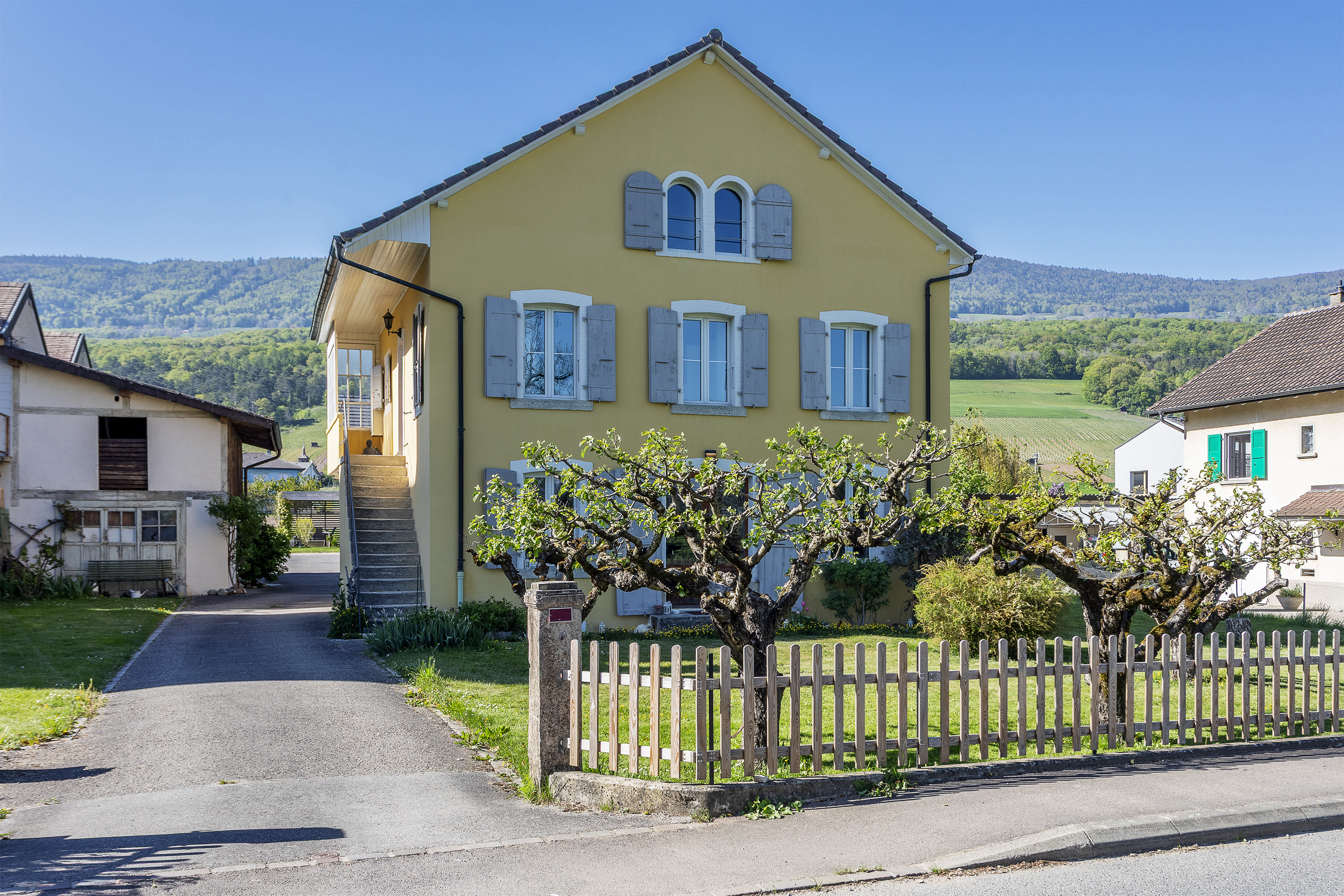 Construite dans les années 1930 et anciennement école du village, cette maison a été acquise en 2002 par les propriétaires actuels, qui l’ont transformée et entretenue avec soin au fil des années. Elle développe aujourd’hui environ 240 m² habitables sur une belle parcelle de plus de 1’100 m², en zone de très faible densité.