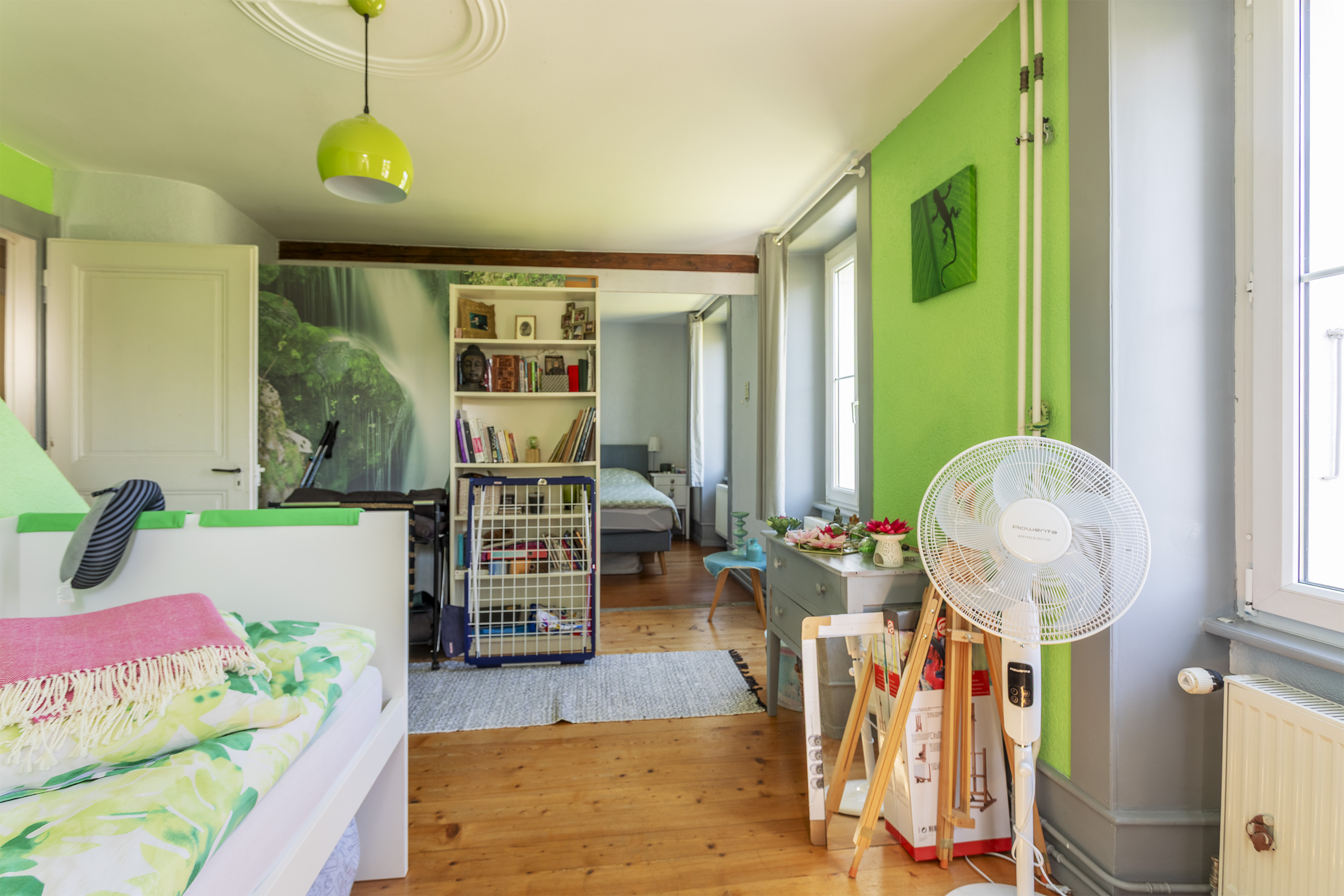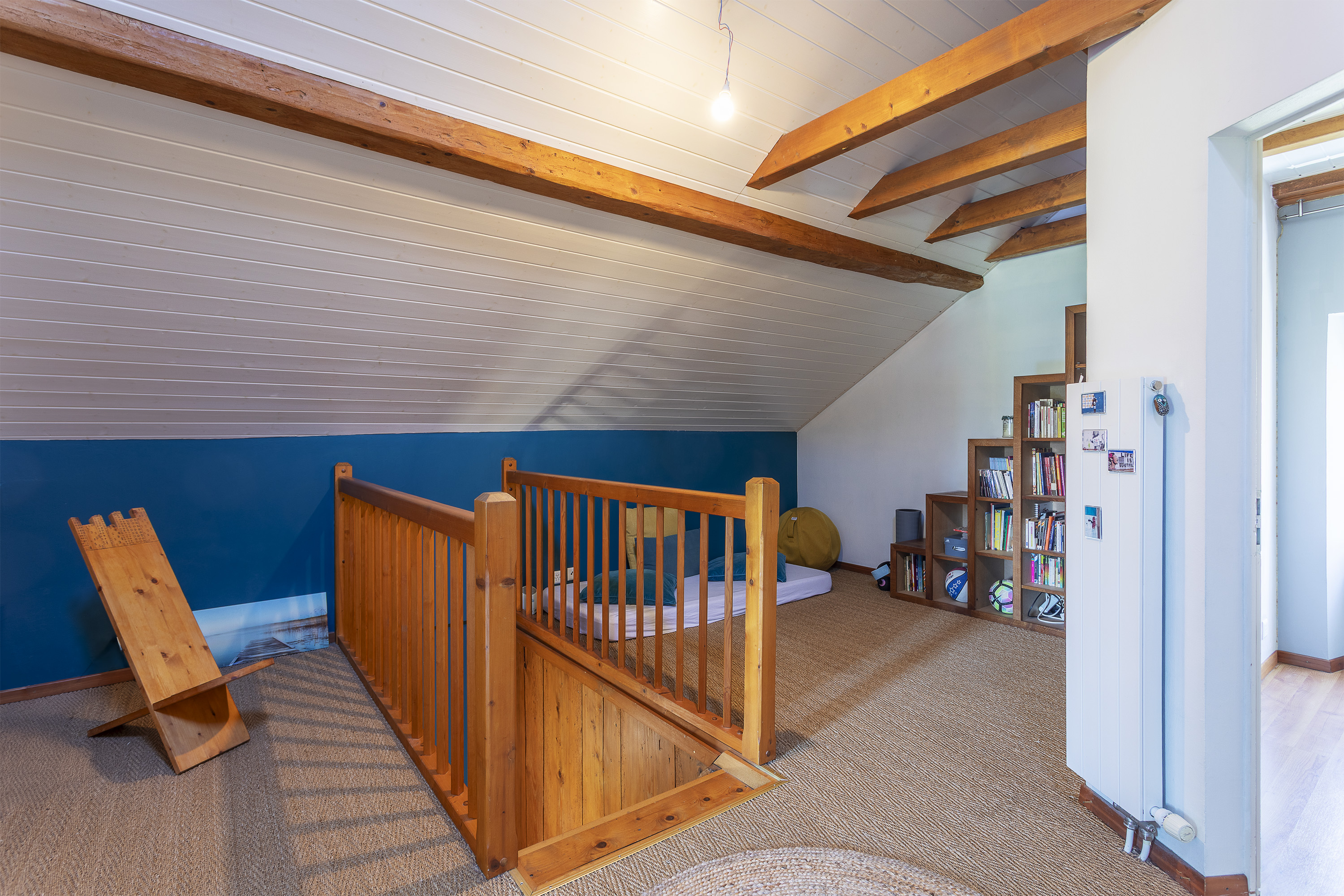 La distribution actuelle propose 6 chambres, 3 salles d’eau, des espaces de vie lumineux avec accès direct au jardin, ainsi que des combles aménagés offrant des possibilités supplémentaires. Chaque étage dispose de sanitaires, ce qui renforce encore la flexibilité d’usage.