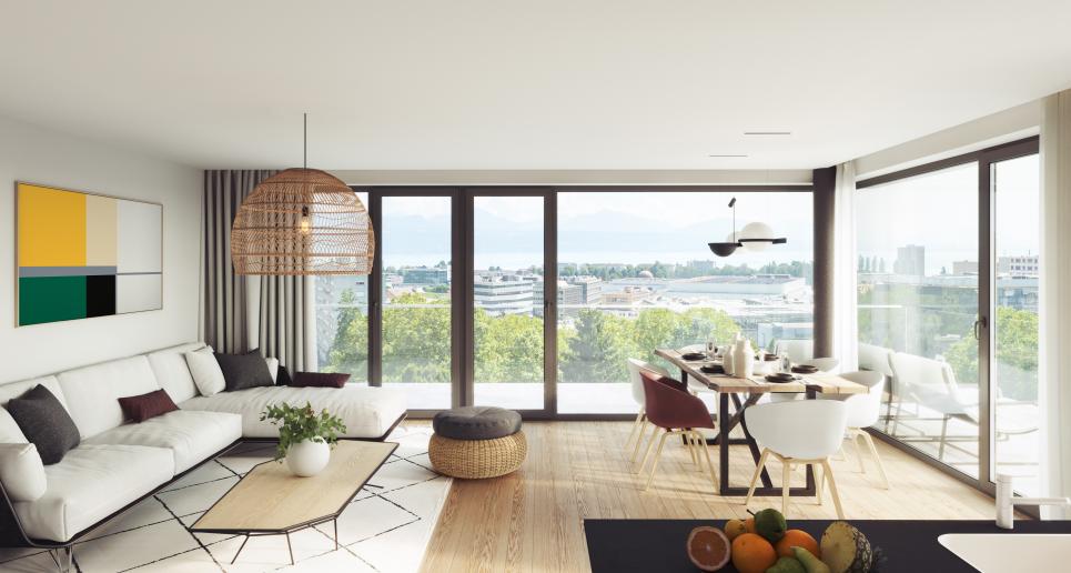 Parfaitement situé dans un quartier résidentiel verdoyant et calme à proximité directe du centre de Prilly, ce superbe appartement résolument contemporain vendu sur plan, bénéficie d'un cadre de vie exceptionnel pour la région, à proximité directe de toutes les commodités et à 7-8 min. du centre-ville de Lausanne.