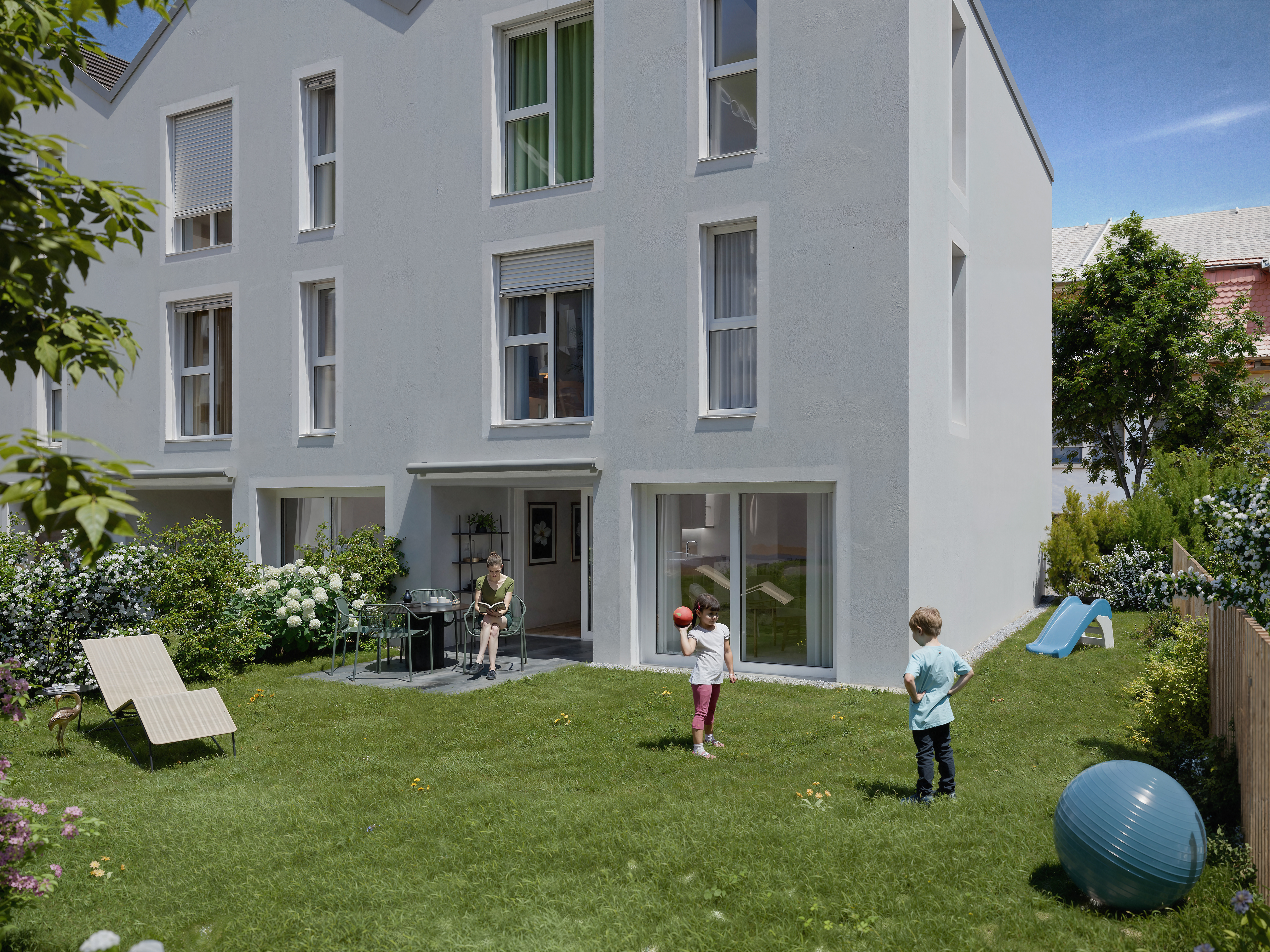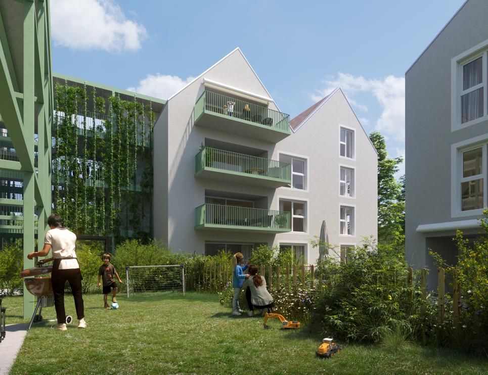 Chaque lot jouira de beaux espaces extérieurs avec de grands jardins privatifs ou de généreux balcons-terrasses pour les appartements à l'étage. Le sous-sol offre un parking souterrain connecté aux lots par ascenseurs ou accès privés. Un spacieux local à vélo est également prévu pour favoriser la mobilité douce. Les immeubles se distinguent par leur très belle ligne architecturale et la qualité de leurs finitions qui en fera une réalisation singulière pour la région et un lieu de vie privilégié.