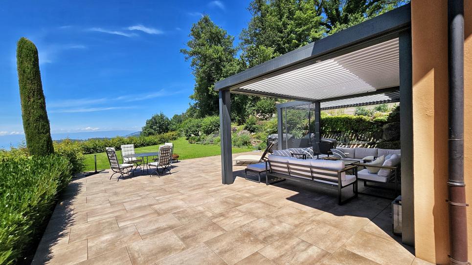 Son magnifique jardin, entièrement clos, est un véritable havre de paix où se déploient plusieurs terrasses pour profiter de la vue ainsi que des différentes ambiances sous des pergolas automatiques offrant ombre rafraîchissante ou ensoleillement généreux à tout moment de la journée.