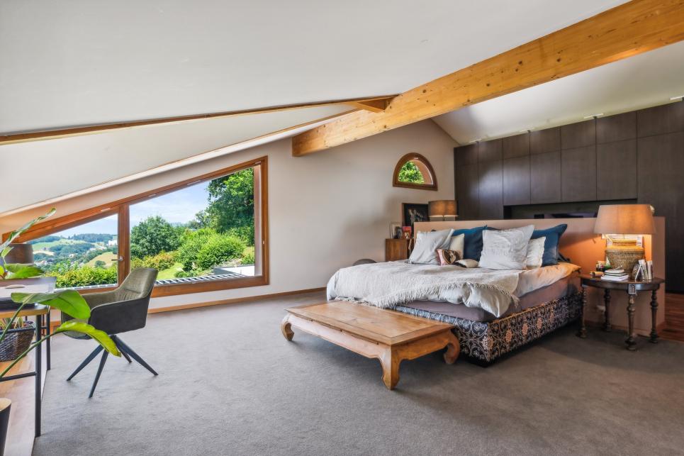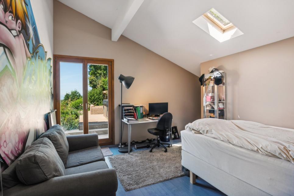 Ses grandes chambres équipées de dressing, sa somptueuse suite parentale offrant une vue incroyable sur le Lavaux. Diposant d'une partie bureau, d'un grand dressing et d'une belle salle de bains avec baignoire jacuzzi, douche et WC.