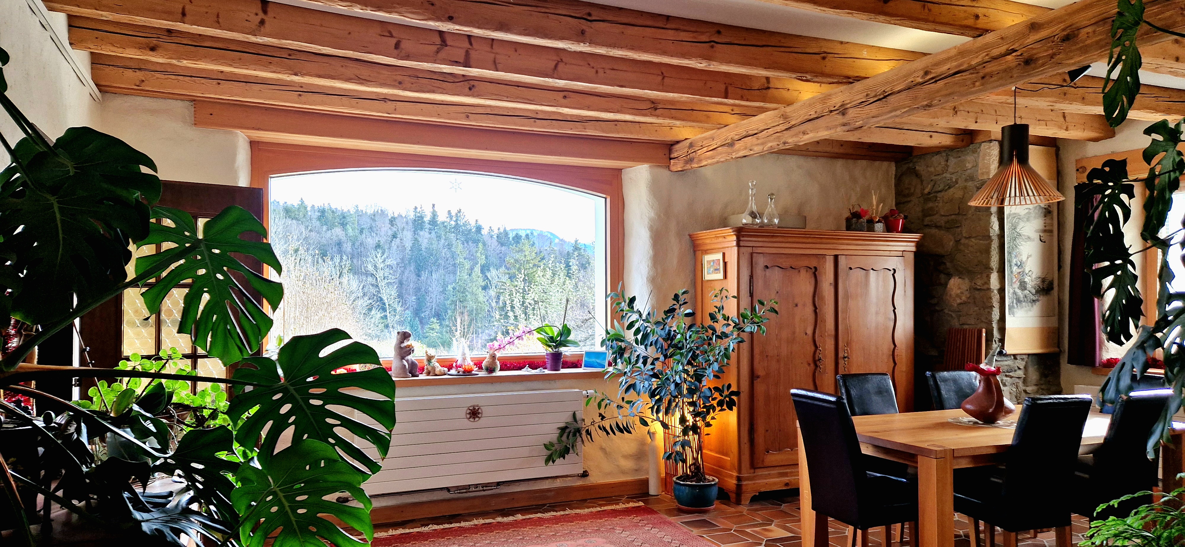 un jardin arborisé où les fenêtres se muent en tableaux.
