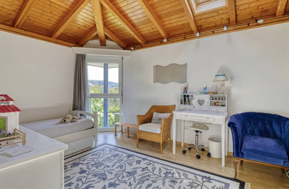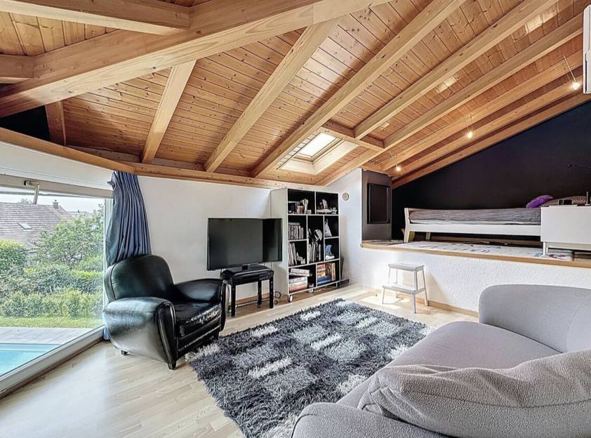 Implantée sur une parcelle d'environ 1'200 m², la villa dispose d'un jardin paysager avec piscine chauffée au sel et d'une dépendance aménageable, idéale pour un studio indépendant ou un espace invité. Avec environ 180 m² habitables et 215 m² utiles sur plusieurs niveaux, elle offre 4 chambres et 4 salles de bains, baignée de lumière naturelle.
