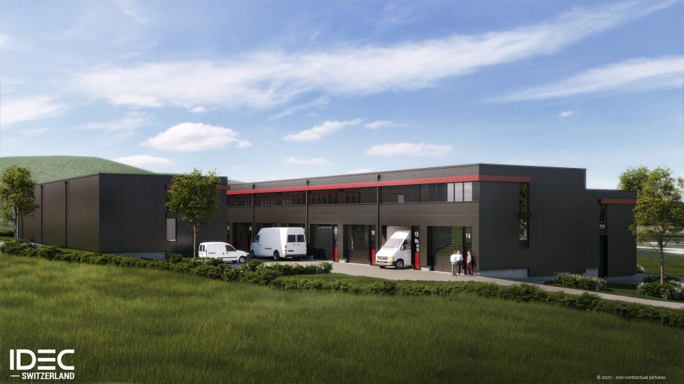 Des portes sectionnelles électriques de 4 x 3.5 m seront installés pour chaque lot.