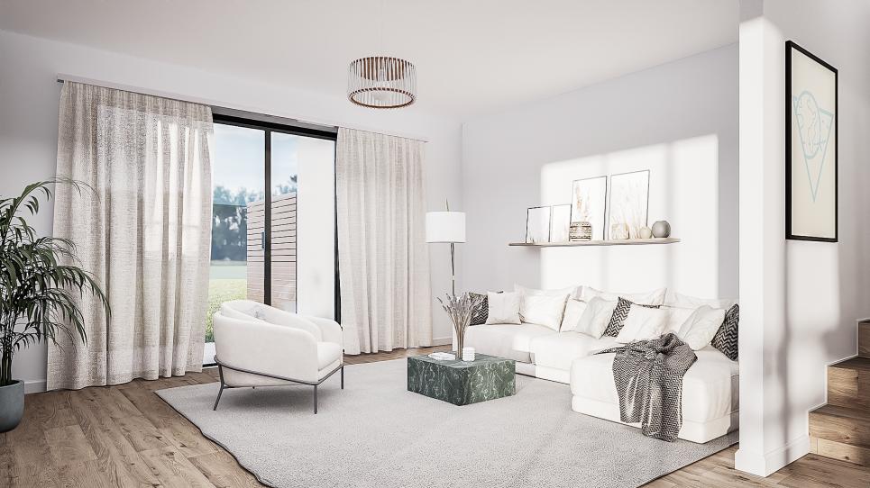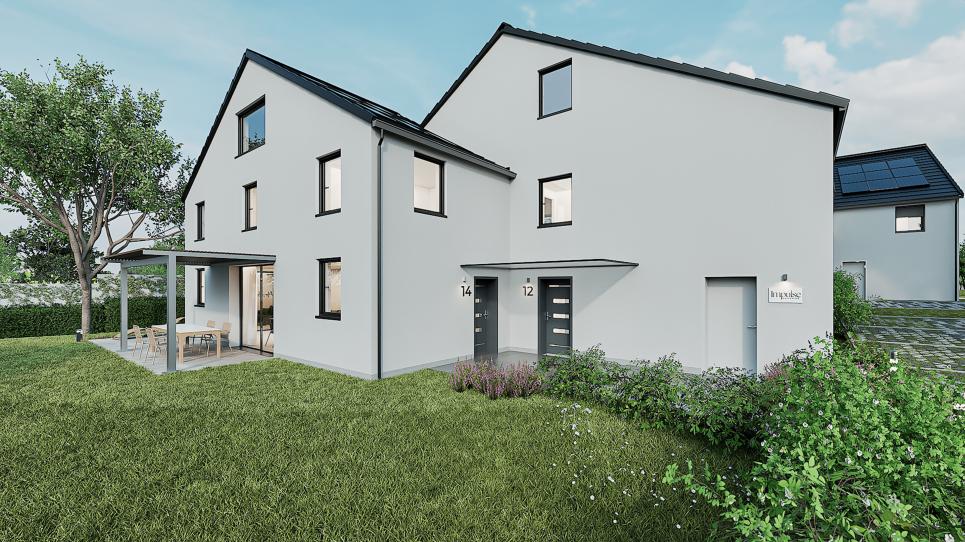 Chaque villa bénéficie de deux places de parc extérieures, d'un jardin privatif ainsi que d'une spacieuse terrasse.