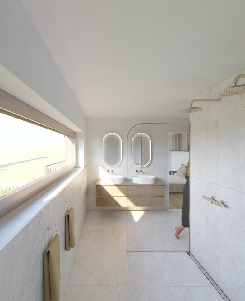 Cette villa comprend quatre chambres, une mezzanine aménageable en chambre supplémentaire et deux grandes pièces naturellement éclairées au sous-sol, offrant ainsi de nombreuses possibilités d'aménagement. Il est également possible d'ajouter une cheminée en option.